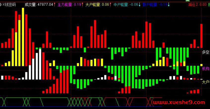 DRAWTEXT(ISLASTBAR=1,IF(主力能量>=0,4.2,4.8),’ 机构’),COLORMAGENTA;
